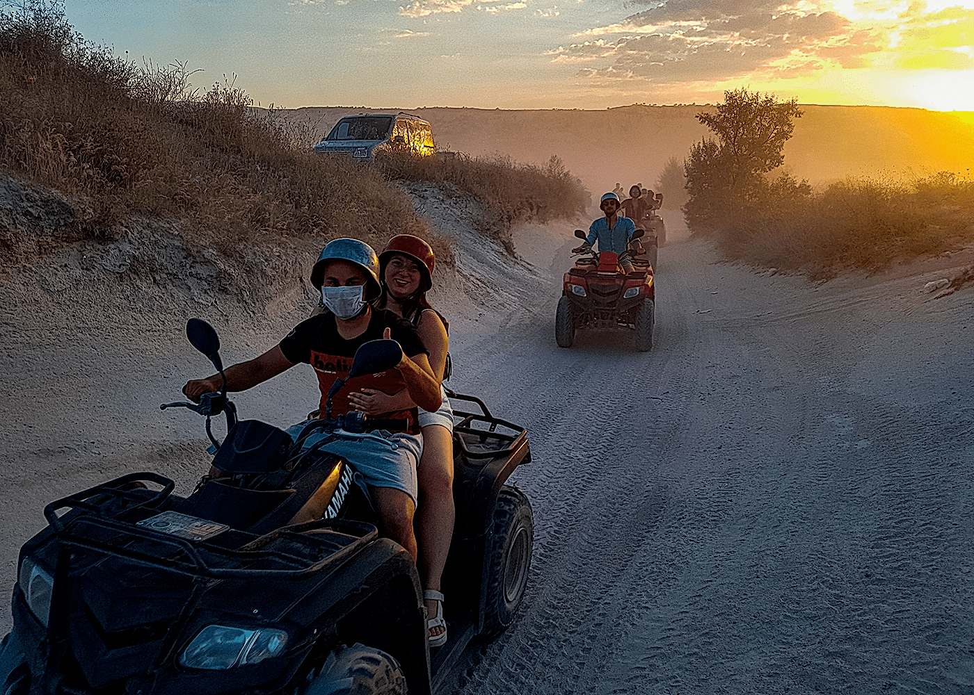 The most popular atv tours in Cappadocia are private atv tours, preferred by those who want to enjoy a more peaceful, personalized experience. Cappadocia is known for its high number of visitors and atv tours are the most popular activity. Standard atv tours follow specific routes and are organized in groups. Within these groups, different guests are required to travel together. Although they are fun and full of adventure, some people may want to explore Cappadocia mysterious nature alone, move around privately with a group of friends, or get lost in the valleys with their loved ones. With a atv tour, you can rent a time slot exclusively for yourself.